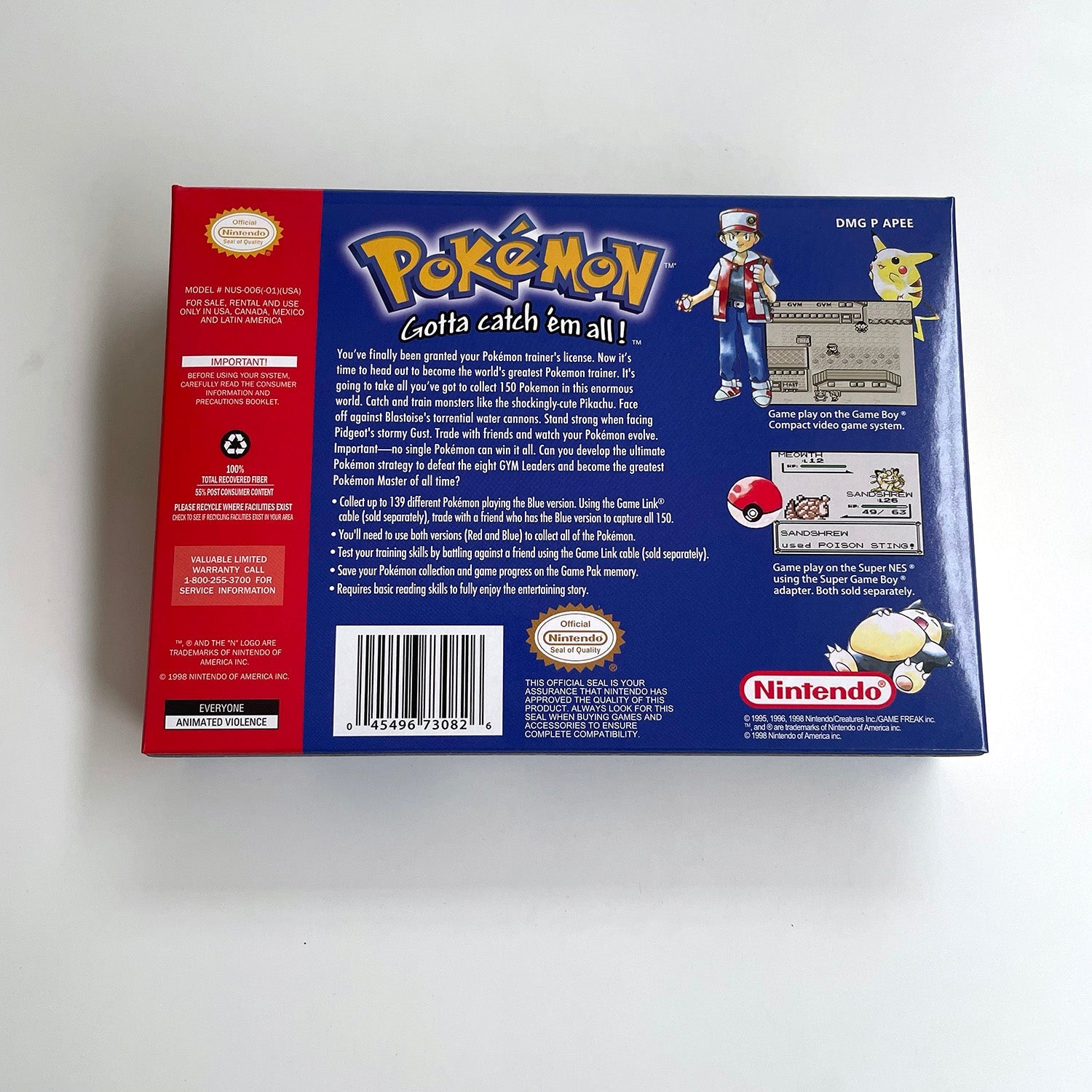 🎮 Pokemon Blue Version Game With Case & Cart N64 Case & Cartridge Set